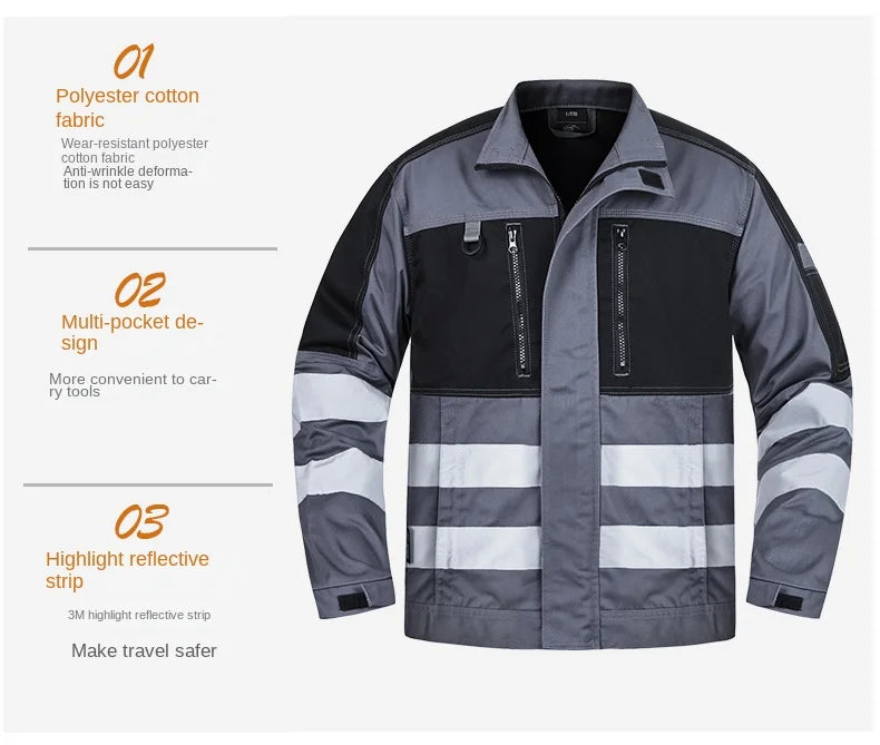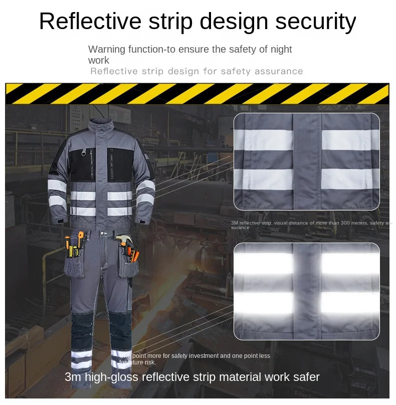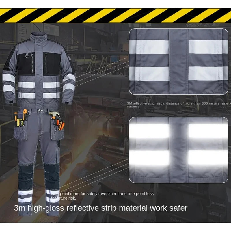 2026 New Work Clothes Men Construction Reflective Safety Coveralls Welding Suit Car Repair Workshop Mechanic Plus Size Clothes