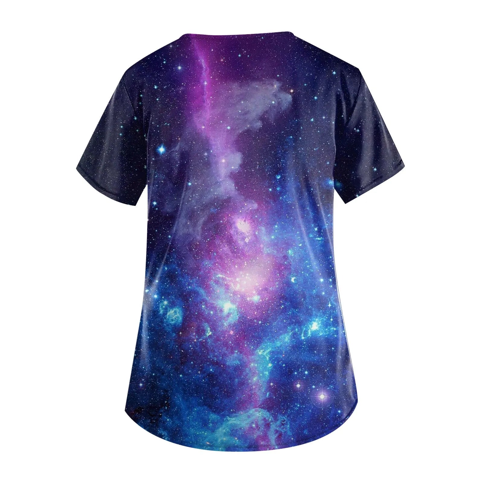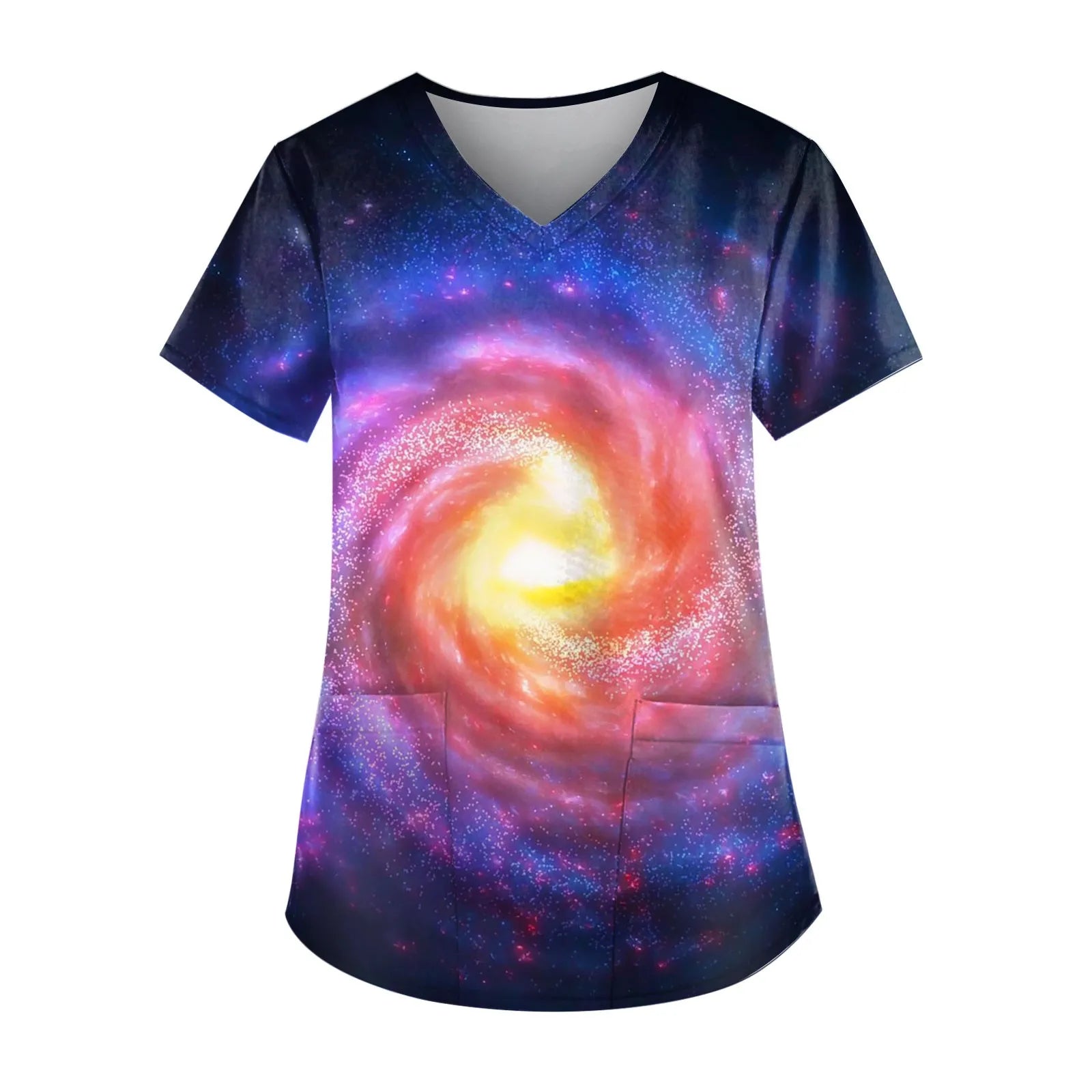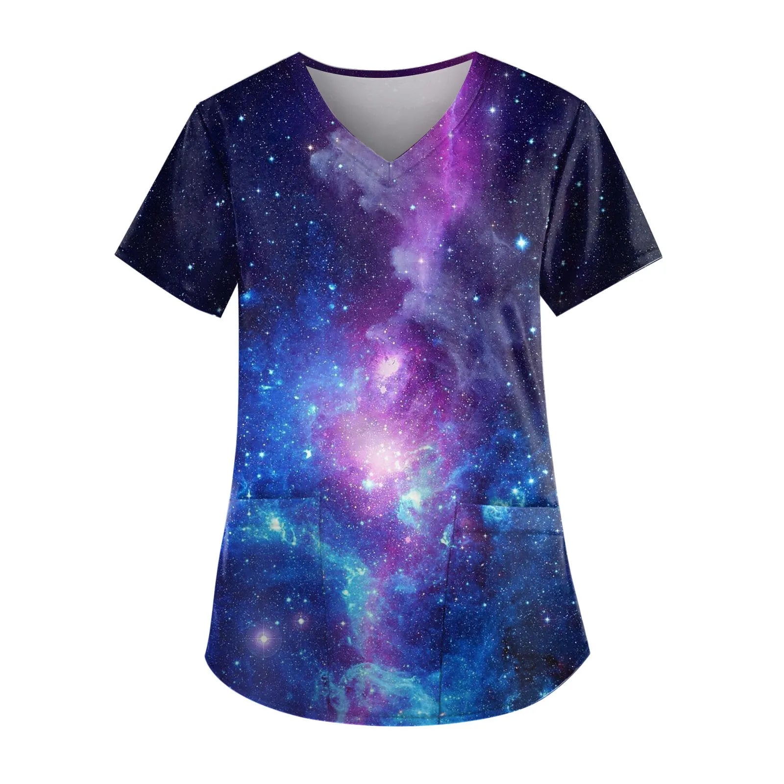 Casual Nurse Uniform Print Women Short Sleeve Tops V-Neck Blouse Shirt Pocket Beauty Care Scrub Uniforms Enfermera Mujer 2024
