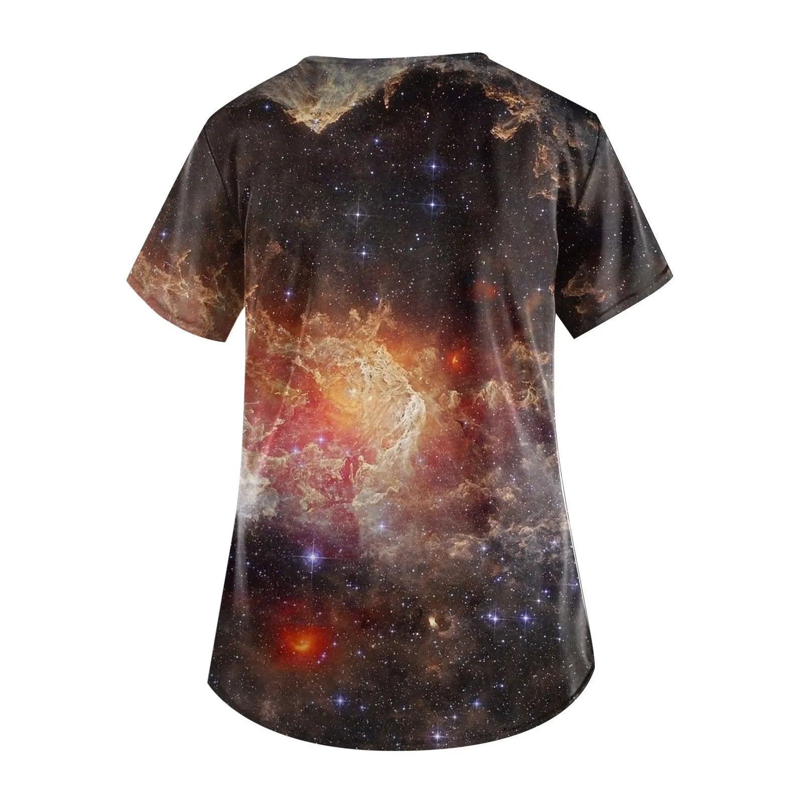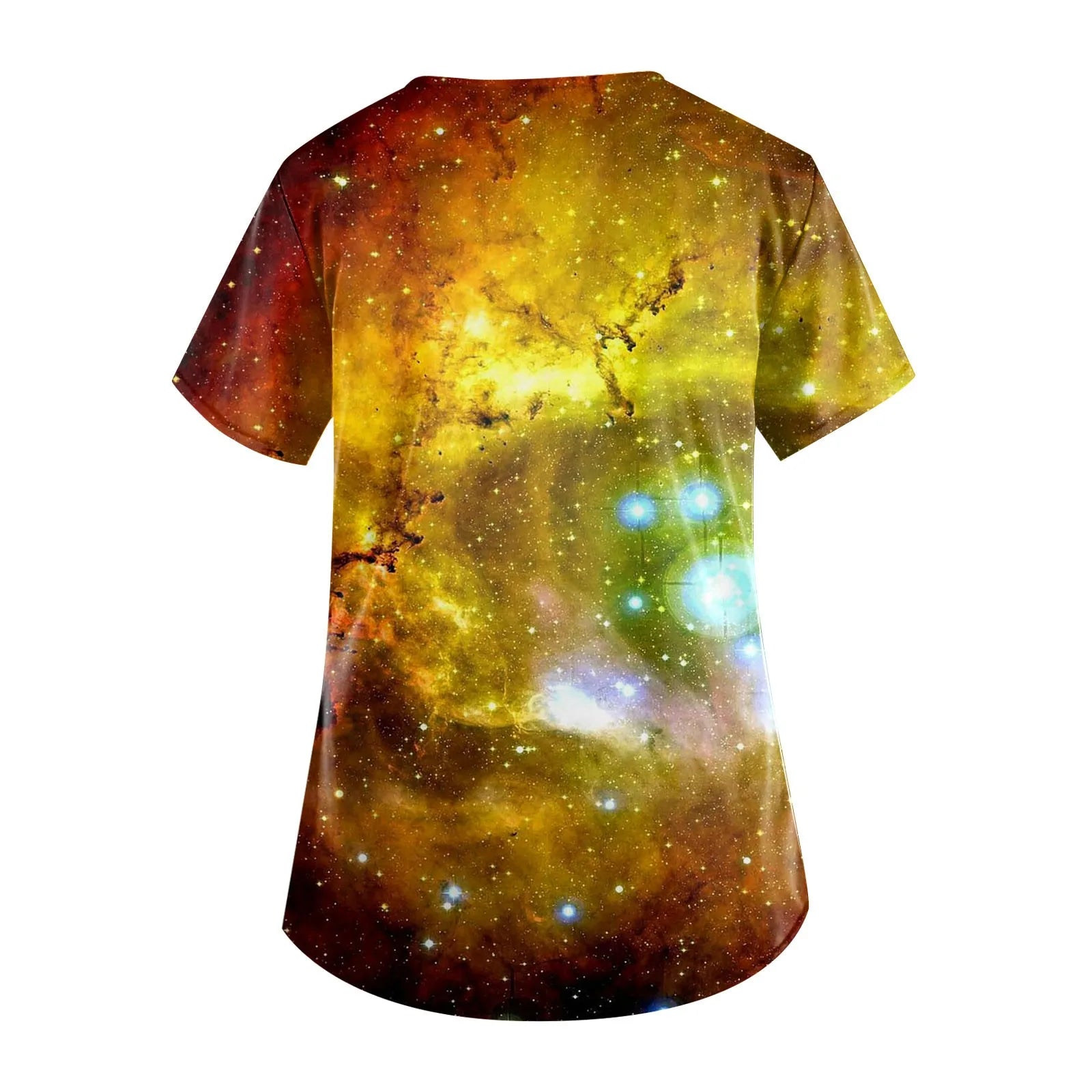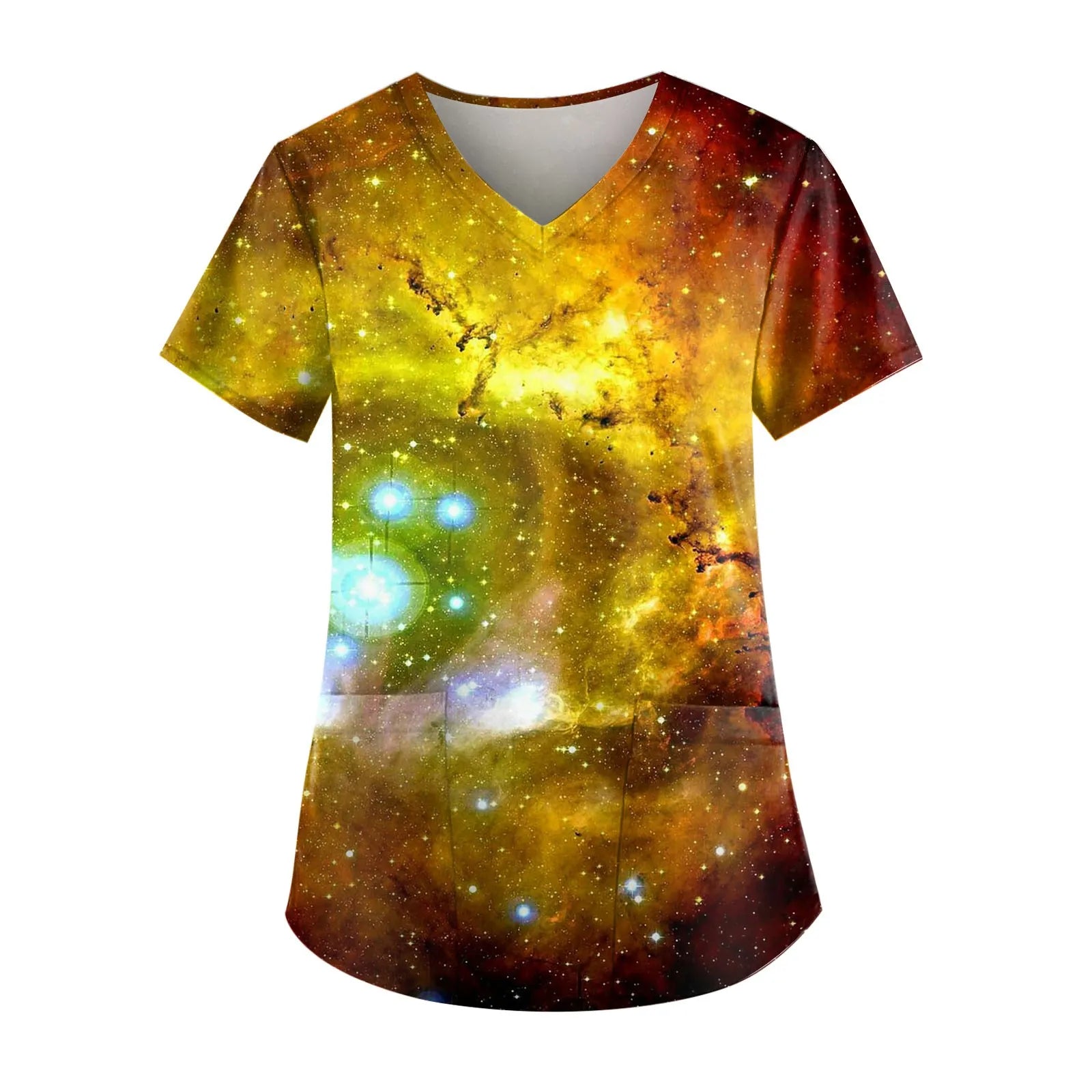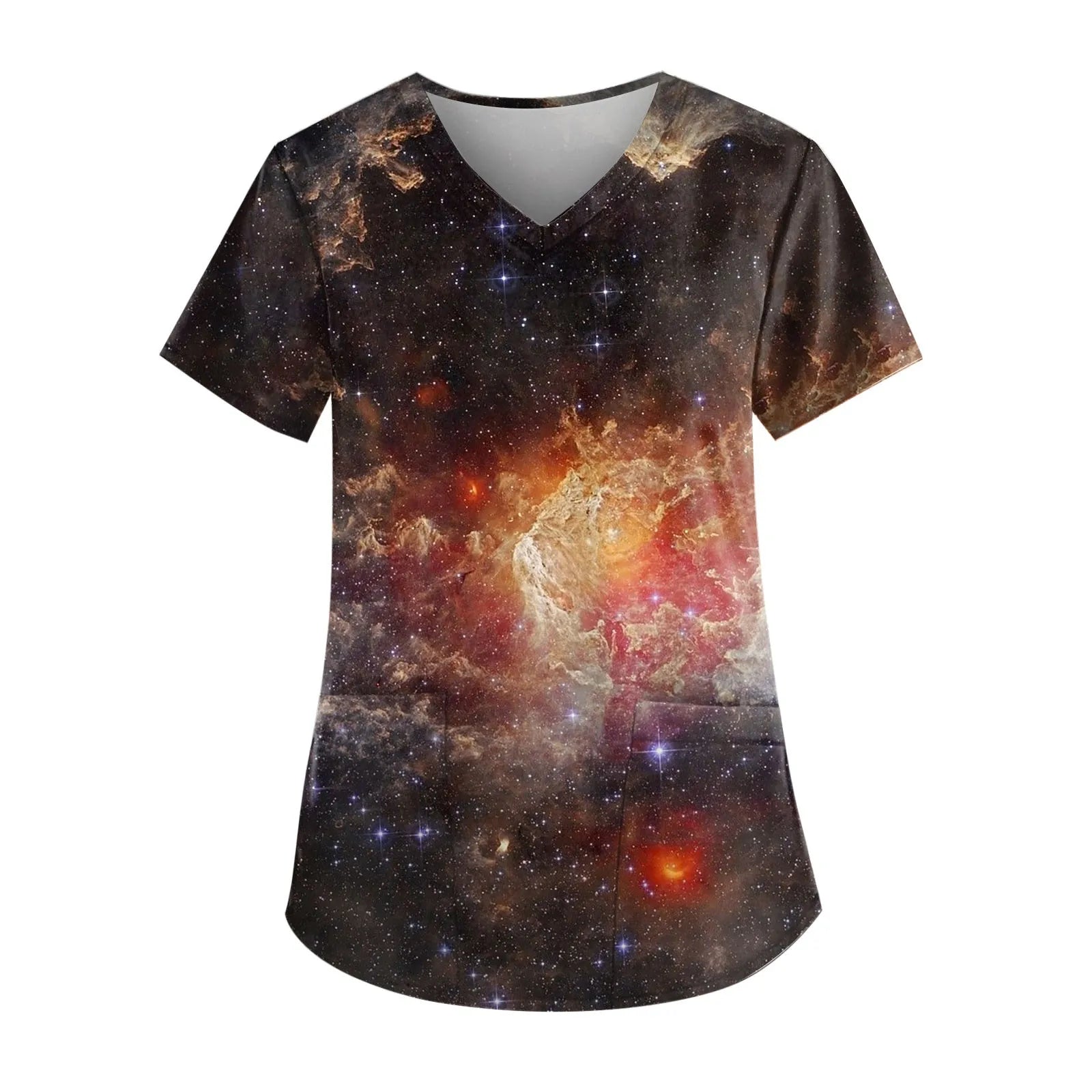 Casual Nurse Uniform Print Women Short Sleeve Tops V-Neck Blouse Shirt Pocket Beauty Care Scrub Uniforms Enfermera Mujer 2024