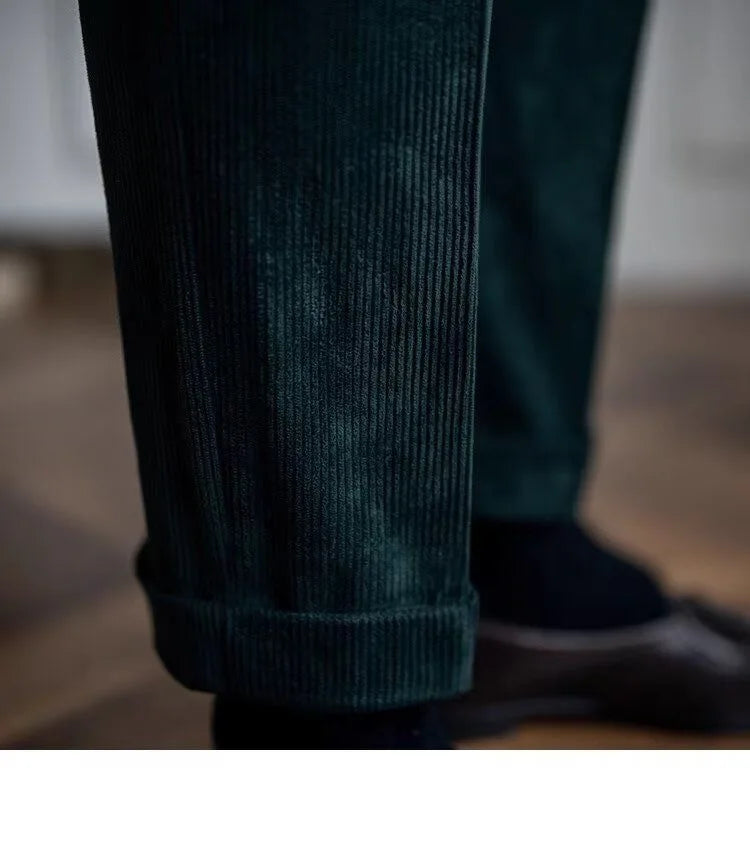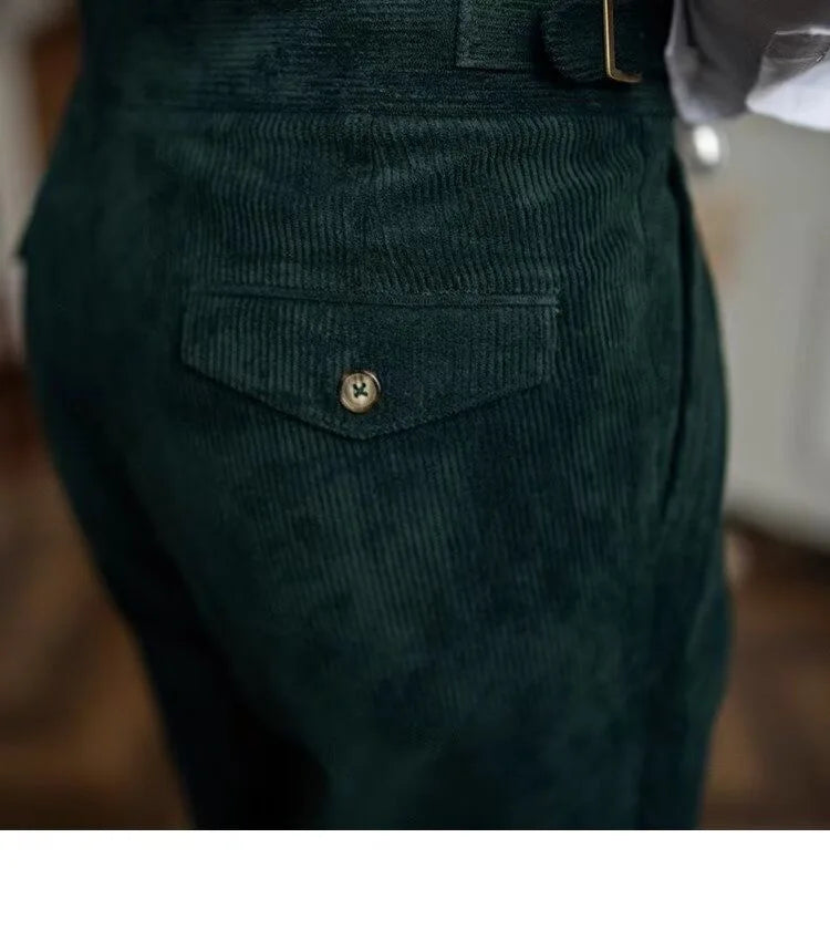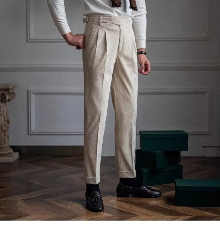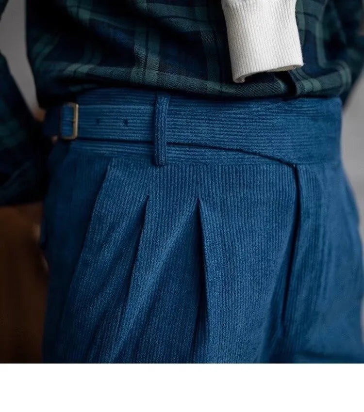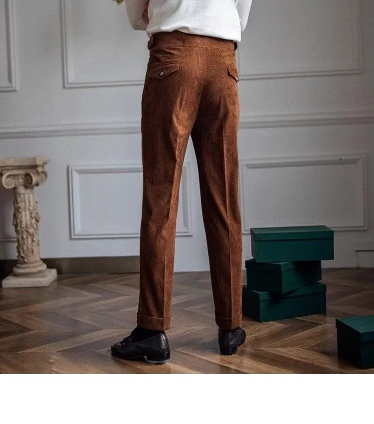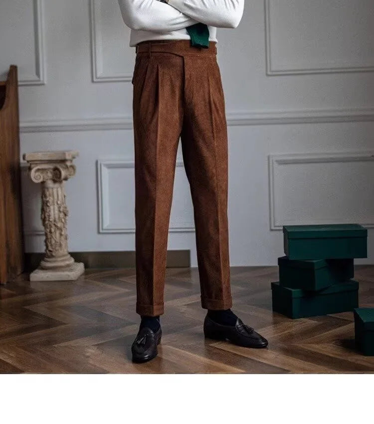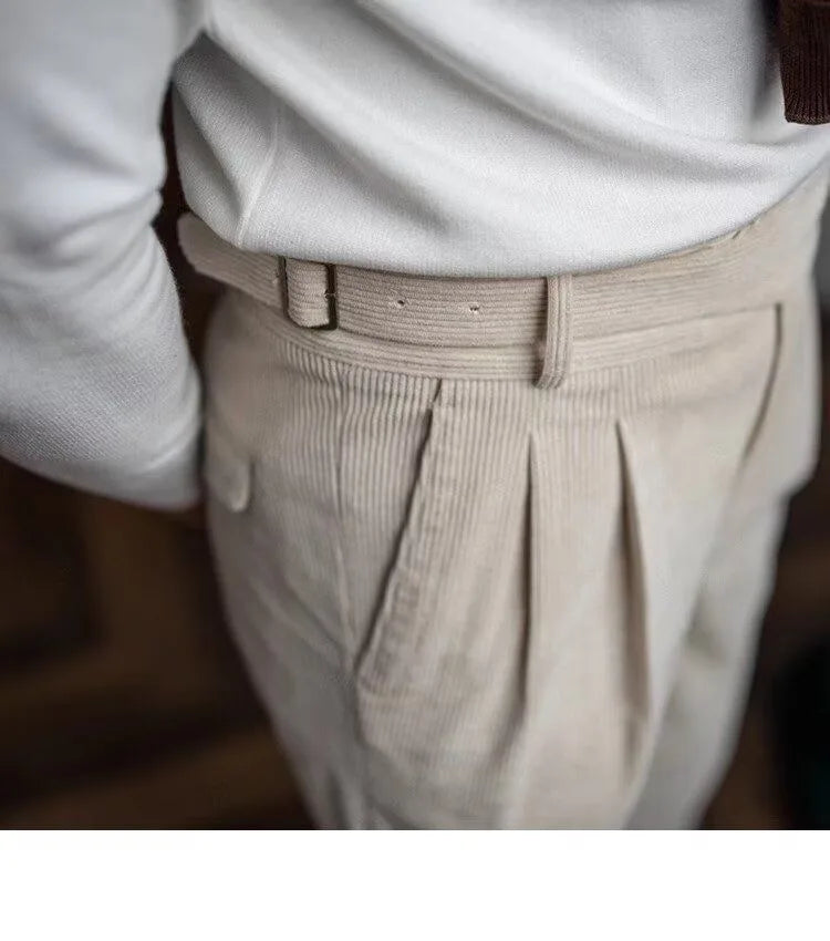 Italian Style Corduroy Naples Suit Pants Men High-waisted Adjustable Belt Straight Trousers Autumn England Business Casual Pant