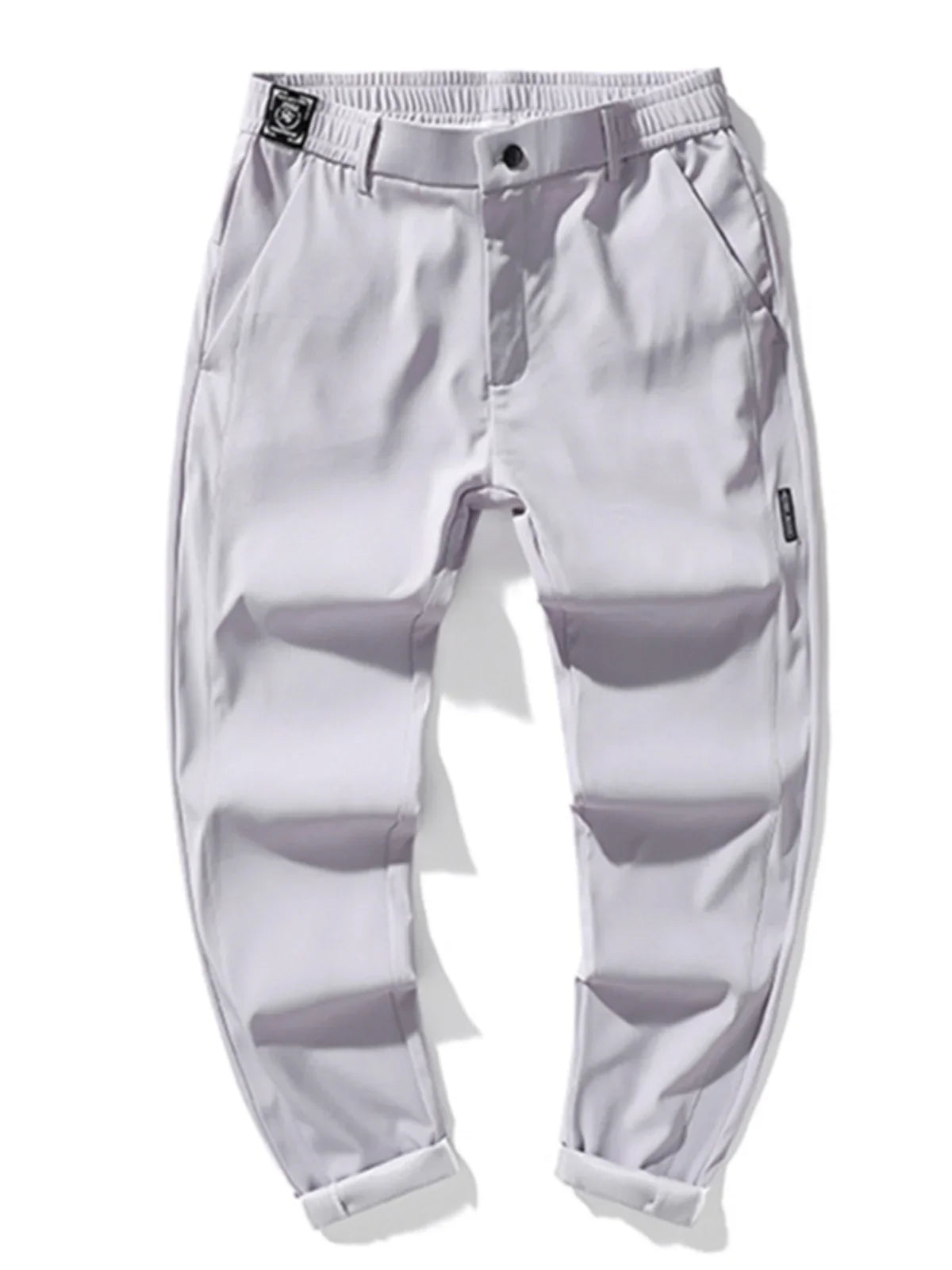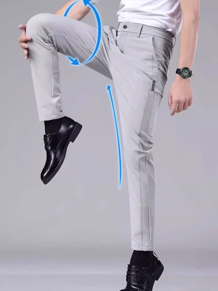Men's casual pants, semi elastic waistband, nylon ice silk elastic straight tube, light gray, business gentleman, summer casual