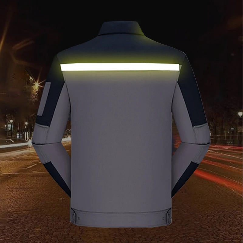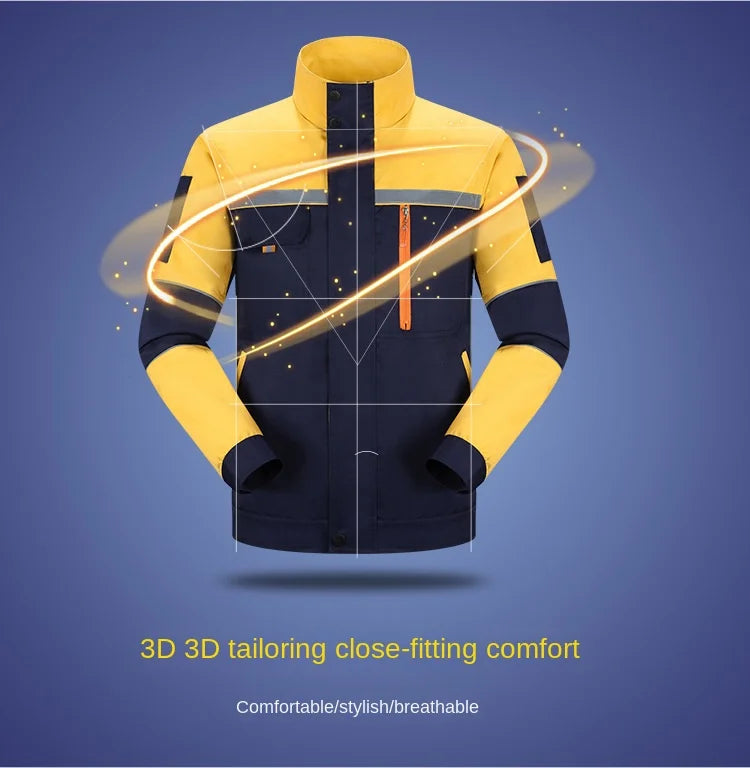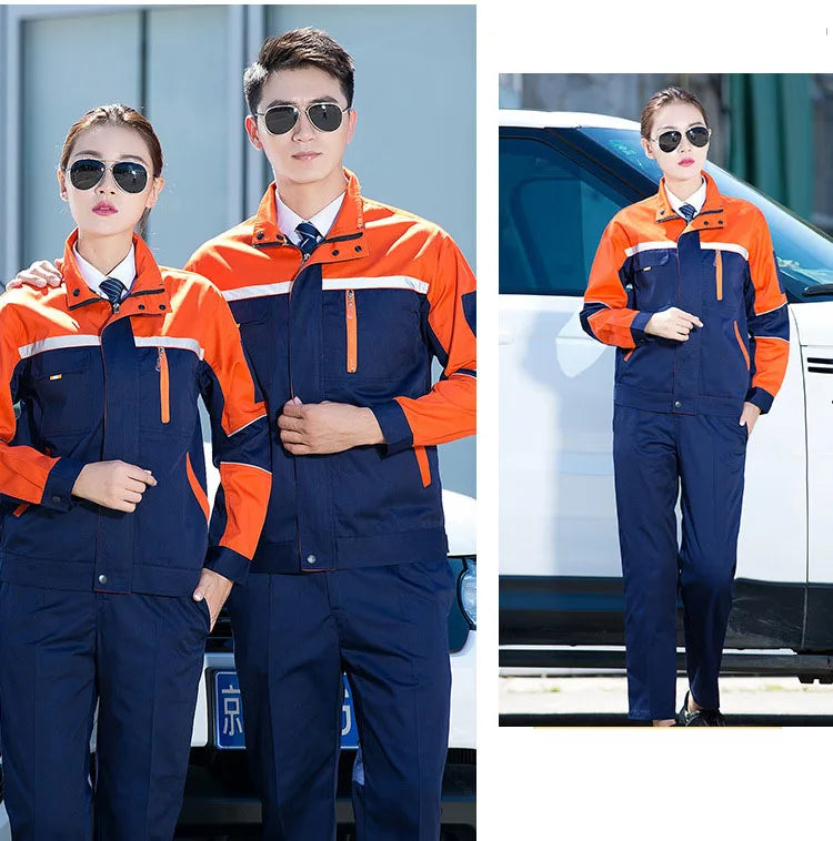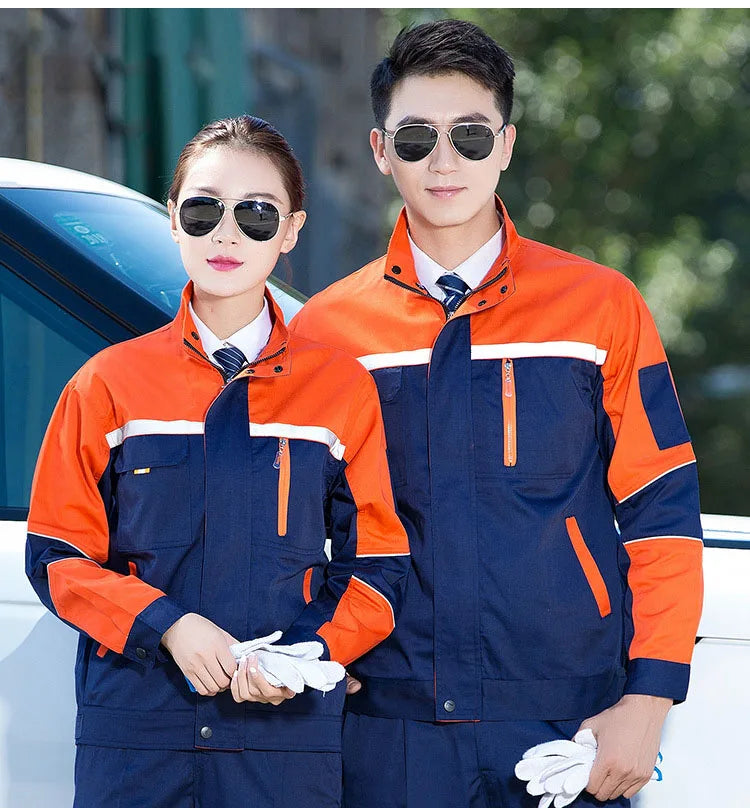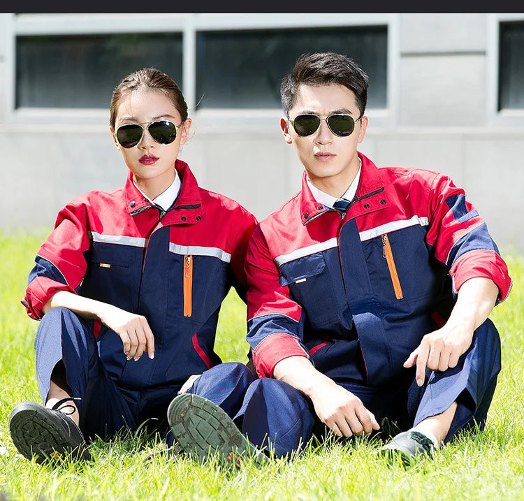 Mens Factory Work Shirt Uniform Long Sleeve Turn-Down Collar Workwear Motor Mechanic Repair Workshop Two-pocket T-shirts Tops
