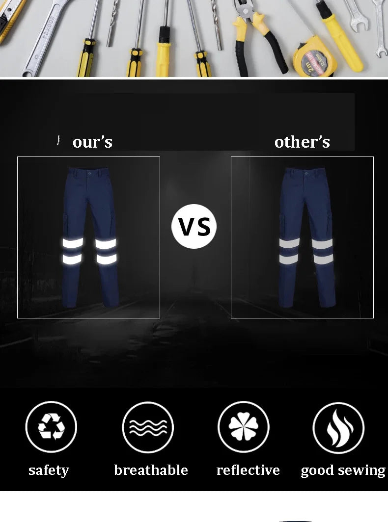 Mens Hi Vis Work Wear Pant Night Reflective Pant High Visibility Pant 100% Cotton Long Pants Navy Blue Pant