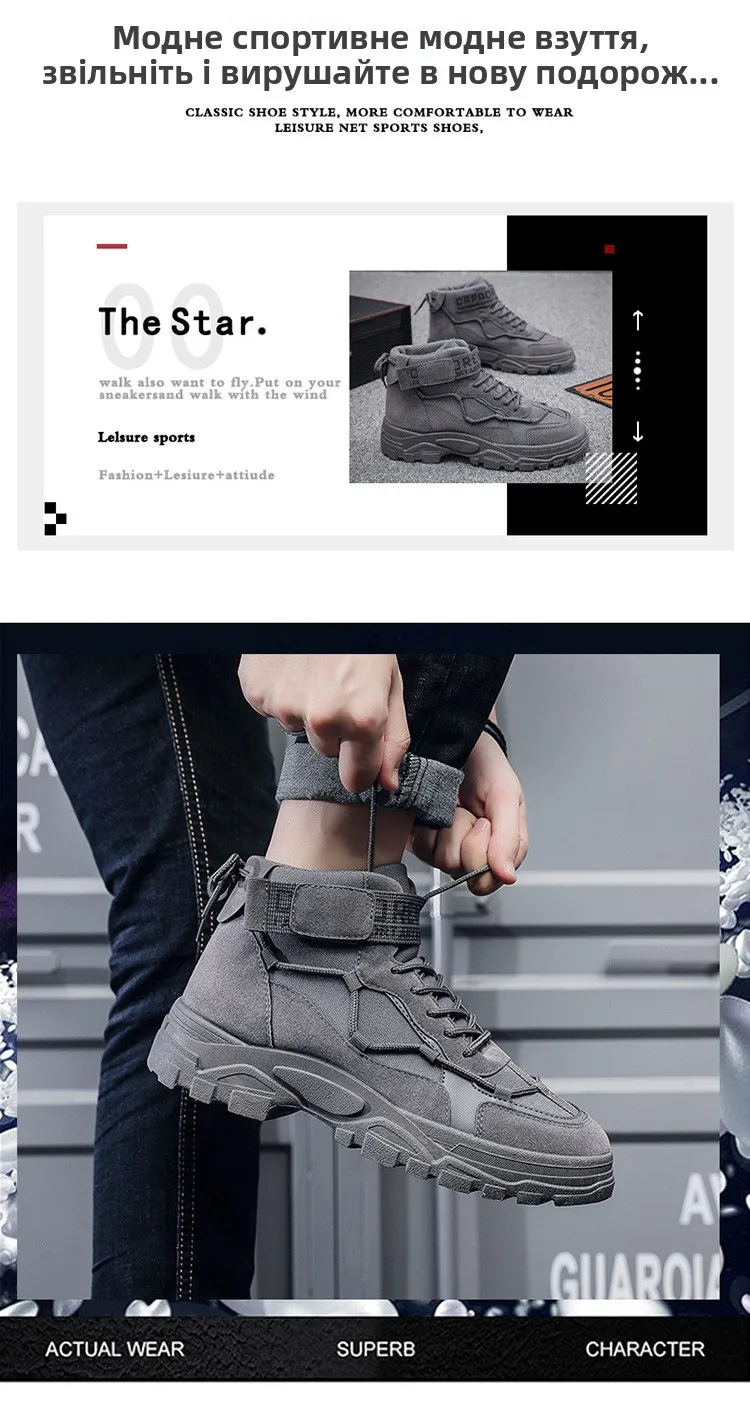 Men's Work Boots Winter New Fce Lined Anti-slip Waterproof Rainproof Warm Boots Korean Sle round Toe Rubber Sole