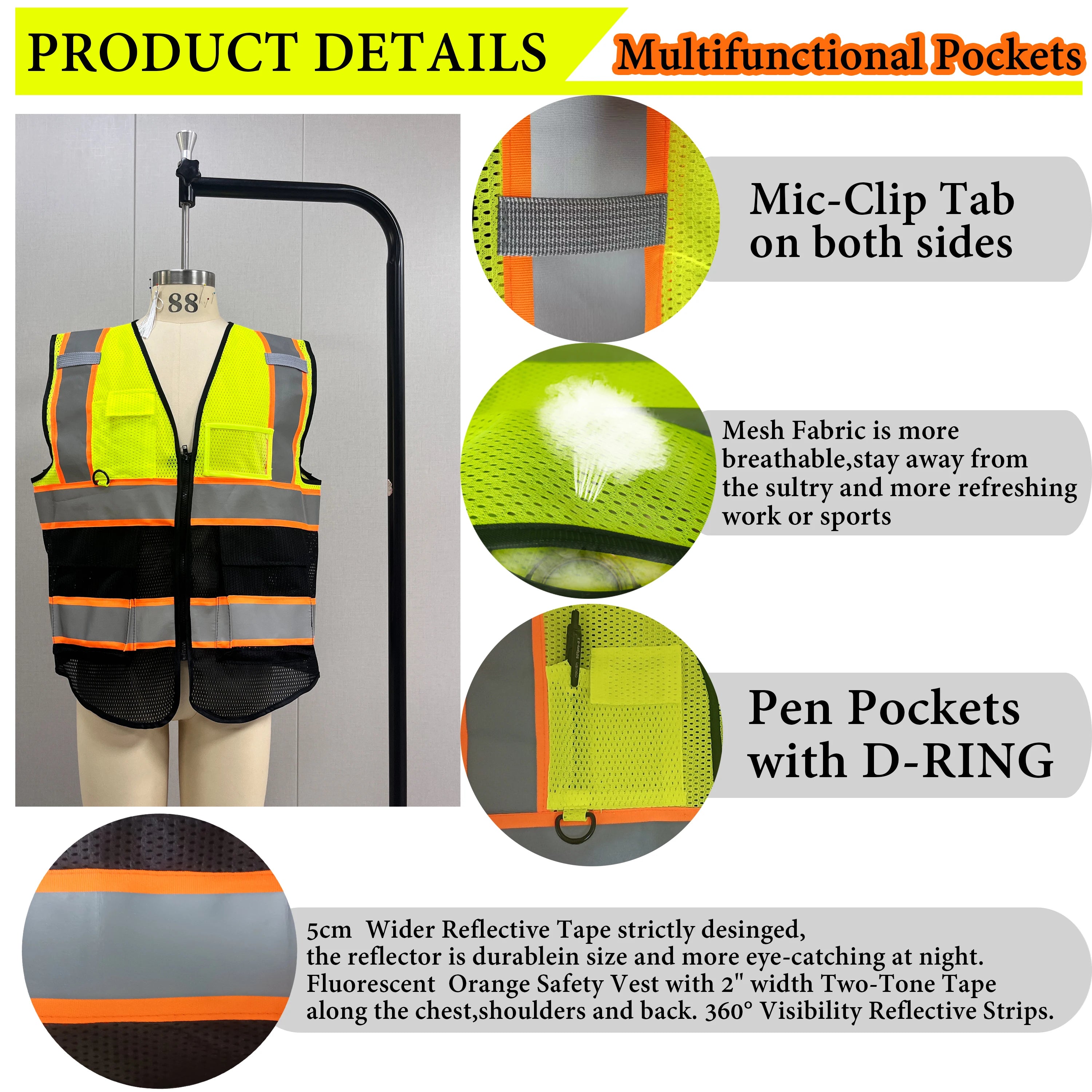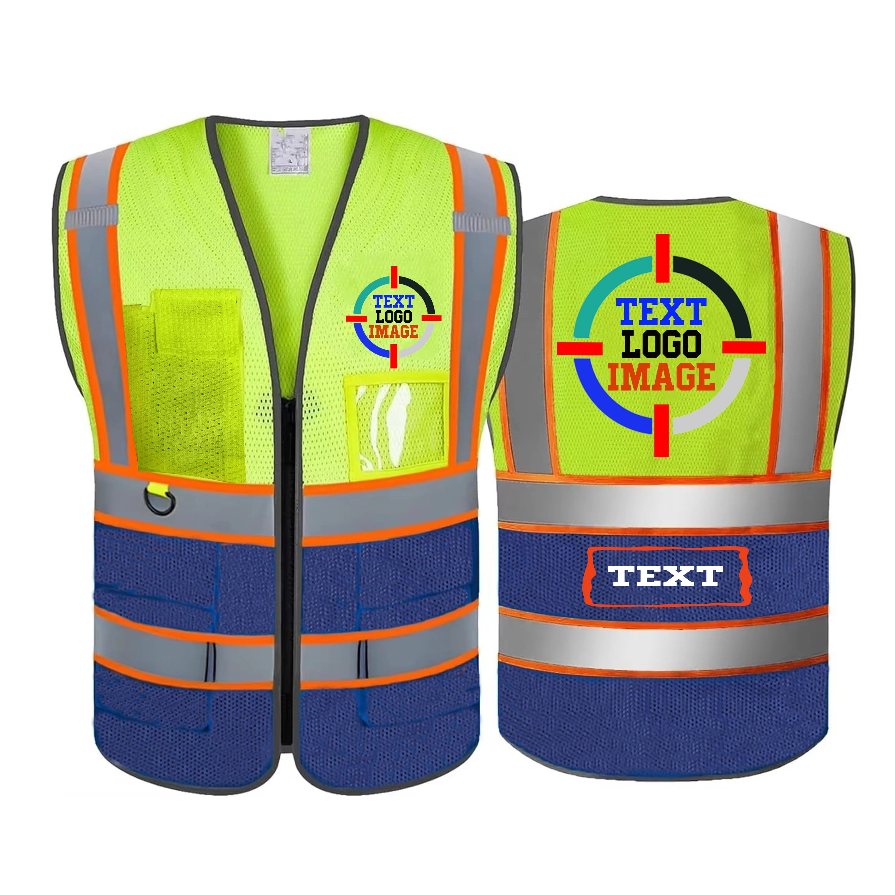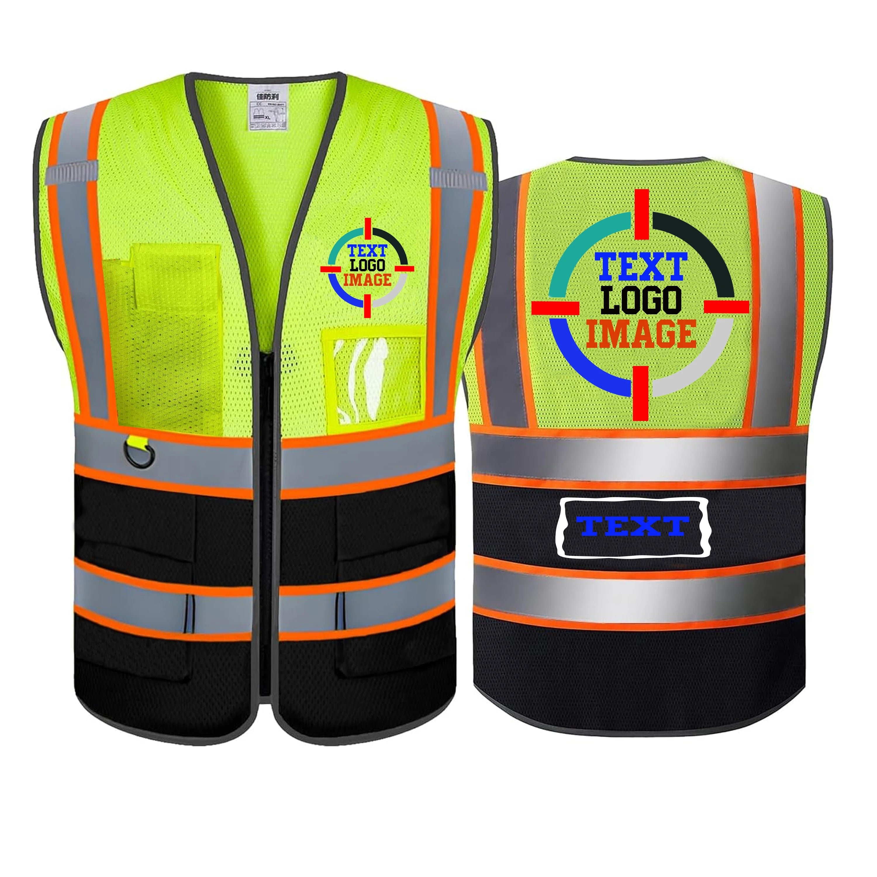 Mesh Safety Vest Customized Your Text Logo Reflective Motocycle Vest Hi Visibility Construction Work Uniform Security ANSI