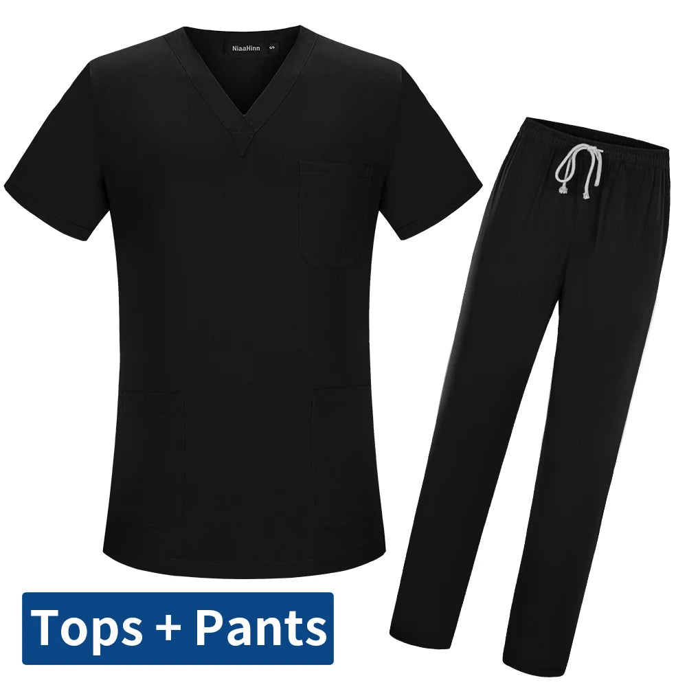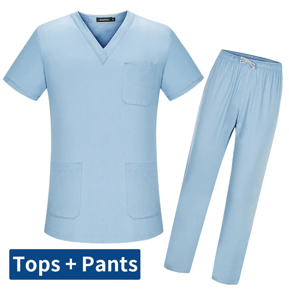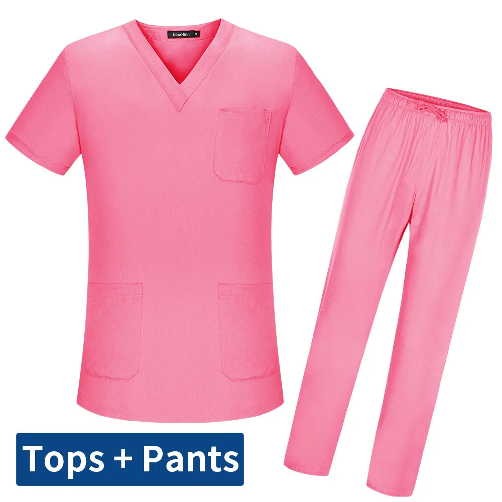 New Women's Scrubs Set V-neck Medical Uniform Short Sleeve Surgical Scrub Uniform Laboratory Work Clothes Dentist Nurse Workwear