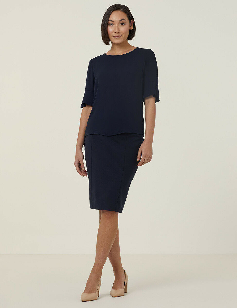 With its ruffled sleeves and soft gathers at the back, our Georgie Fluted Sleeve Top offers an elevated take on the work shirt. It's fashioned from a lightweight georgette that has been mindfully made using Regen® - a recycled polyester that's both light and wrinkle resistant. It's finished with smart FERAN® ICE technology for a cool, breathable feel. The blouse's soft silhouette and pretty design details create a refined feel. Tuck it into slim, ankle-length pants or wear loose over our streamlined Ponte Pencil Skirt for instant elegance.