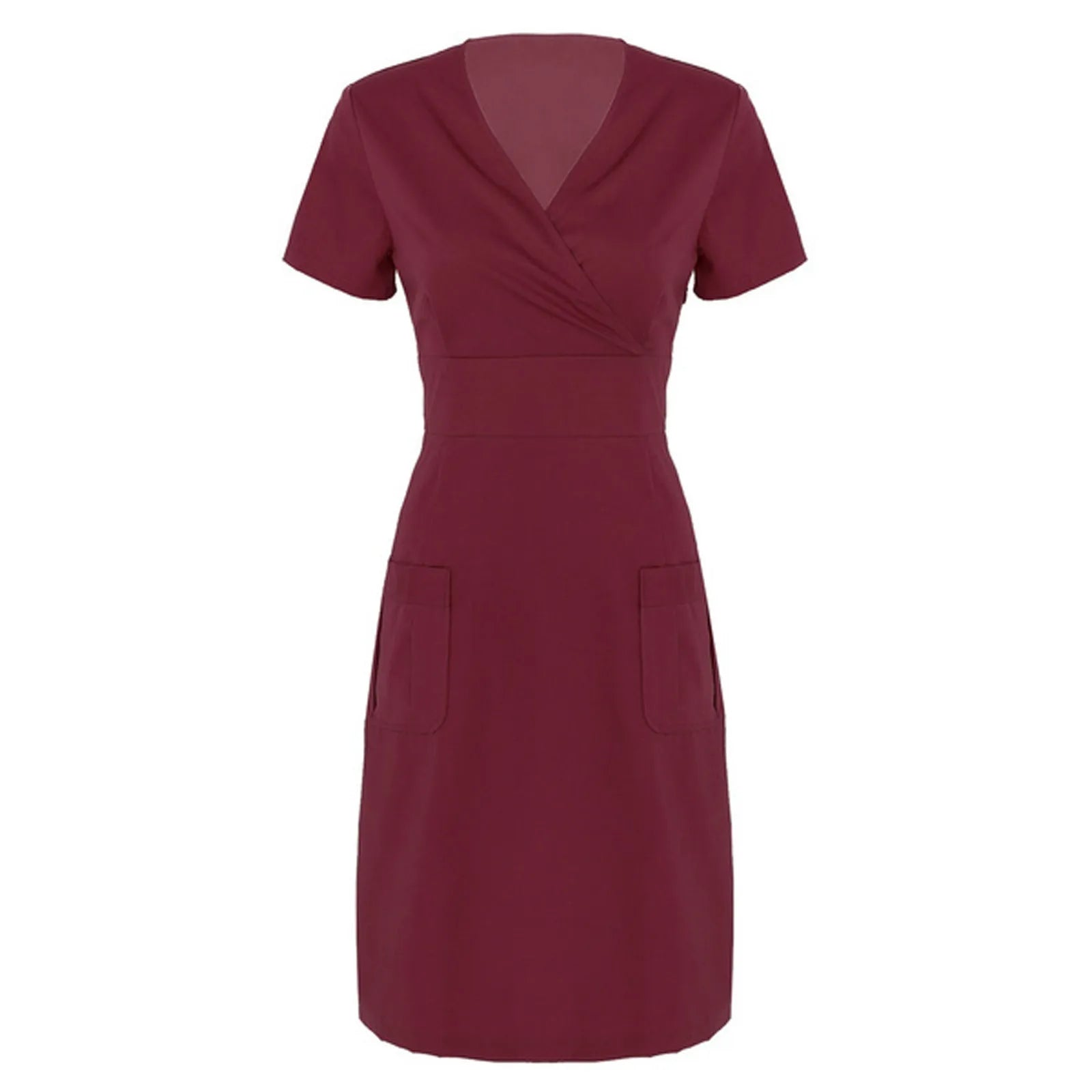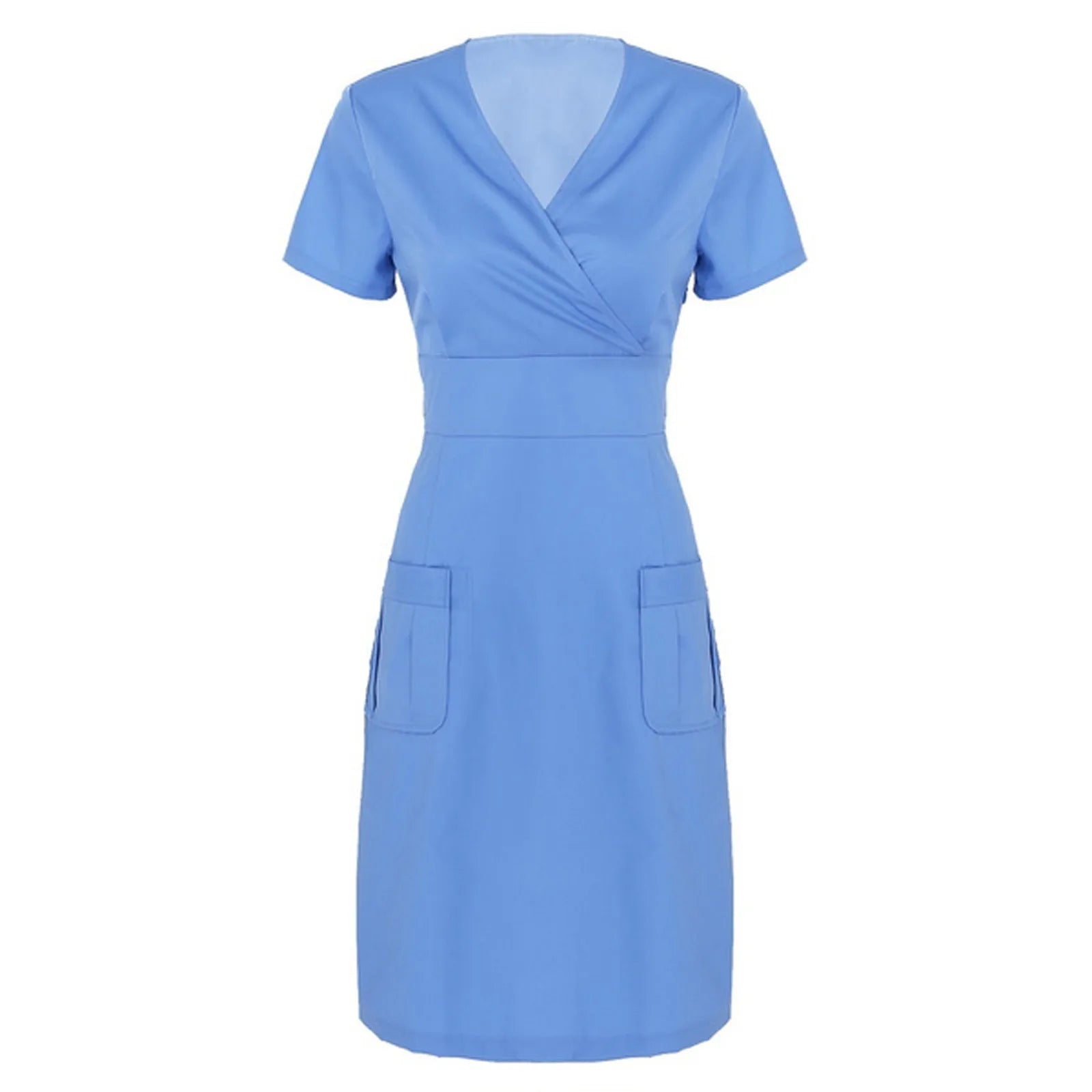 Nurse Uniform Dress Womens Short Sleeve Pharmacy Working Uniform Dress Medical Care Women Casual Nursing Scrubs Spa Dresses