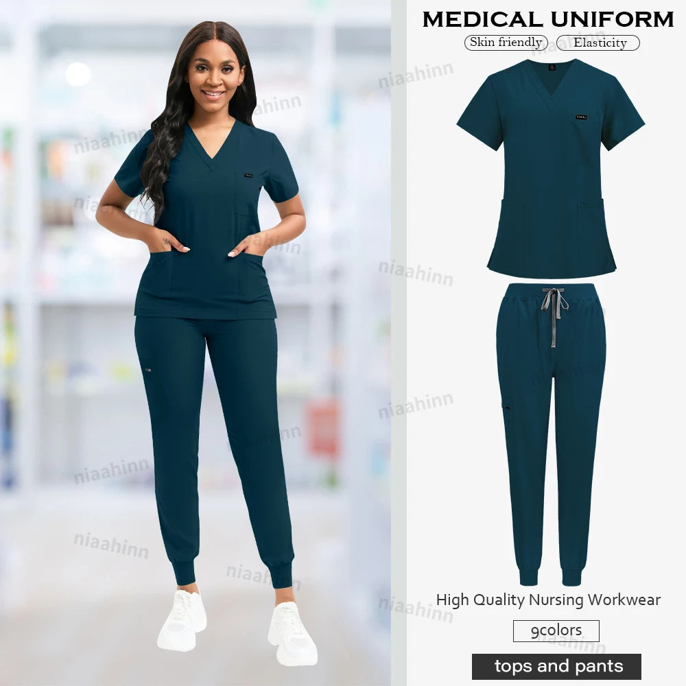 Nurse Uniform Fashionable V-neck Uniform Set Mens Scrub Medical Scrub Women Pet Shop Clinic Pharmacy Workwear Beautician Uniform