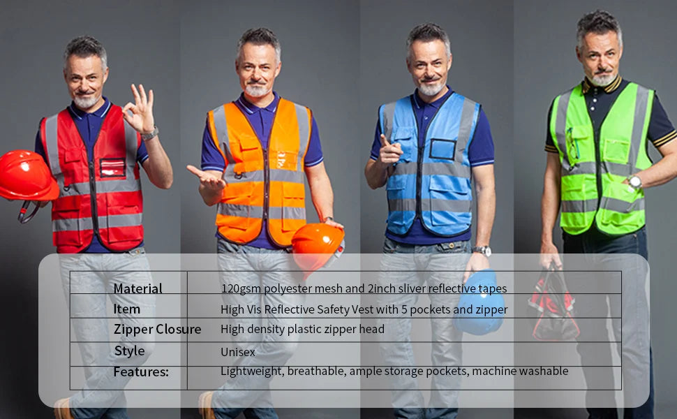 Reflective Safety Vest For Women Men High Visibility Security With Pockets Zipper Front Meets ANSI/ISEA Standards