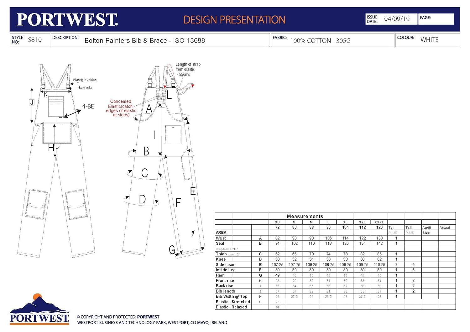 In summary, the Portwest S810 Cotton Coverall is a functional and reliable garment that provides excellent protection against paint spills and other workplace hazards. With its bib pocket, large front pouch pocket, knee pad, hip and rule pockets, and elasticated back section, this coverall is designed for maximum comfort and functionality. Order yours today and experience the ultimate in comfort and protection.