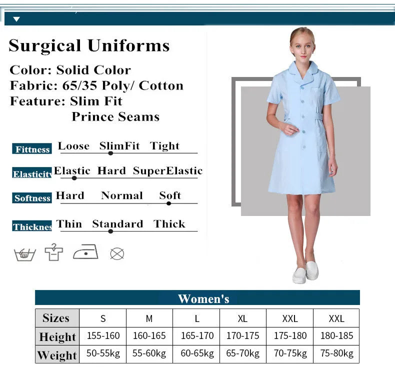 SPECIFICATIONSColor: Blue, white, pinkType: Slim fitFeature: Wait band for good shapeBrand Name: NoEnName_NullItem Type: Nurse UniformModel Number: nurse uniform NOY-Dress001Fabric... Read more