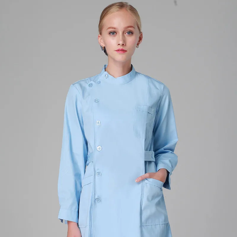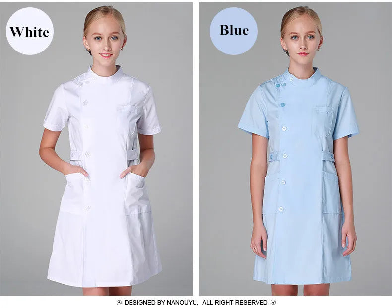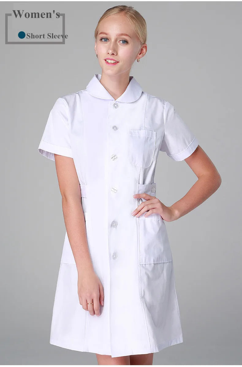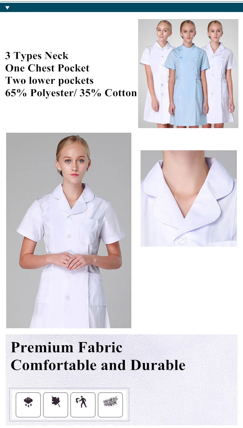 Scrub Uniforms Dress Robe White Women Nursing Scrubs Jacket Full Length Poly Cotton SPA Beautician Veterinary Work Wear Uniform