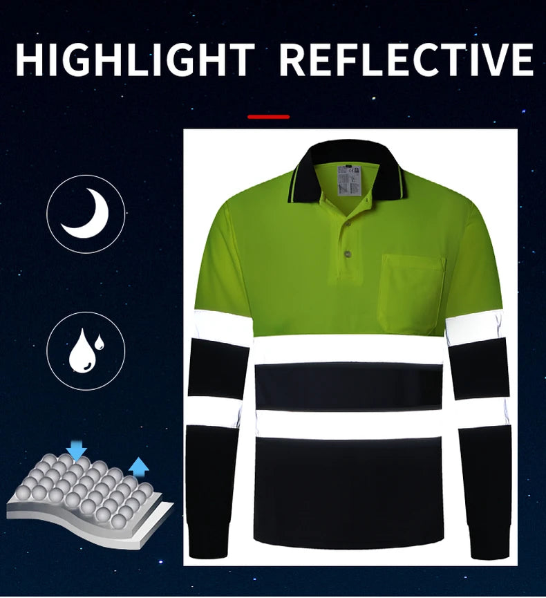 Security Reflective Shirts for Men Hi Viz Vis Shirt with Pocket Two Tone Workwear High Visibility Reflective Clothes