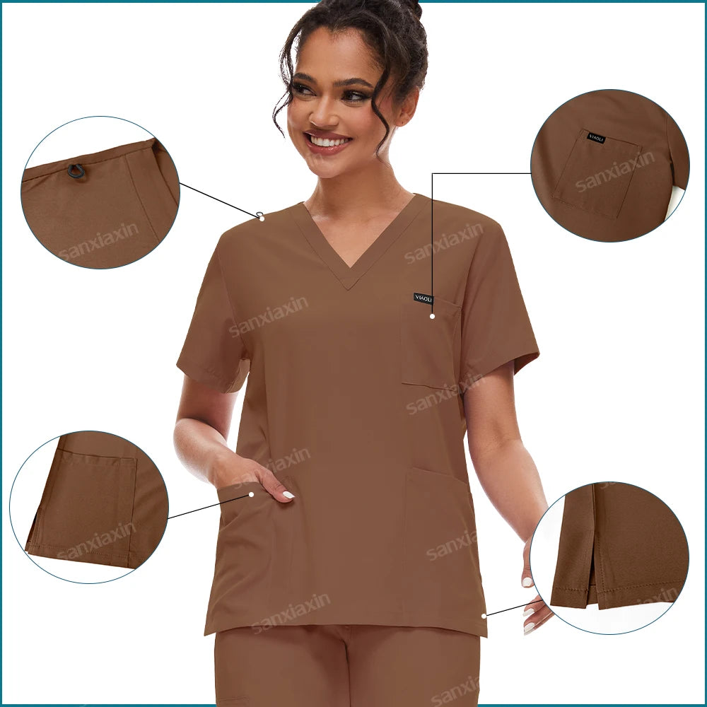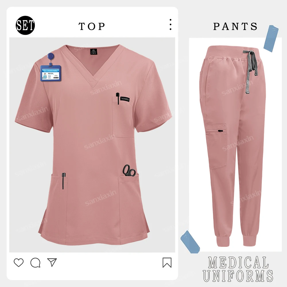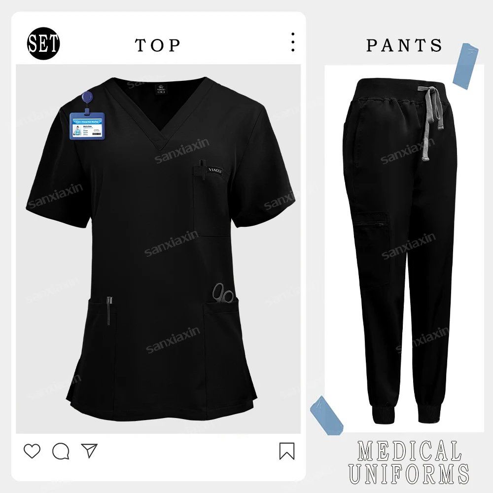 Short Sleeves V Neck Hospital Uniforms Unisex Nurse Uniform Medical Scrubs Set Doctor Surgical Scrubs Nursing Uniform Jogger Set