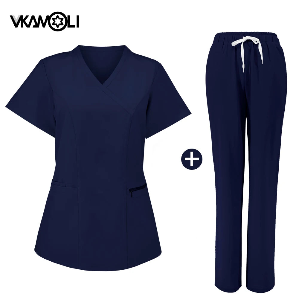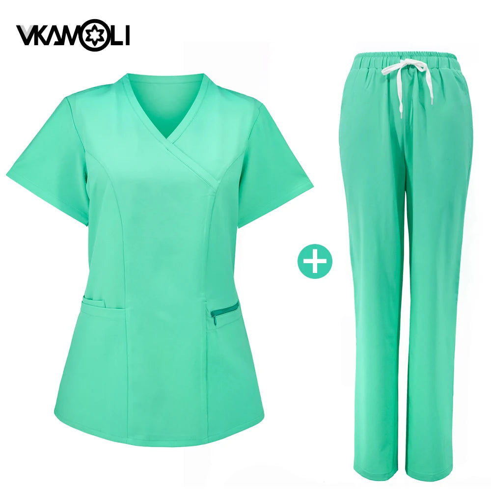 Slim fitting Surgical working clothes Doctor Nurse Nursing Uniforms Women Medical Workwear Spa Dentist Lab Clinic vet Scrub Suit