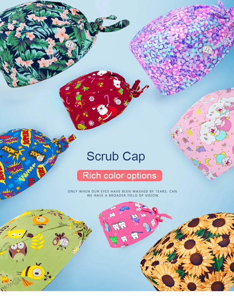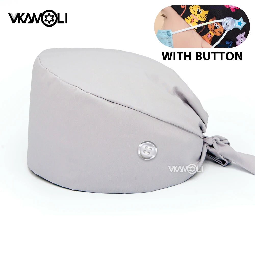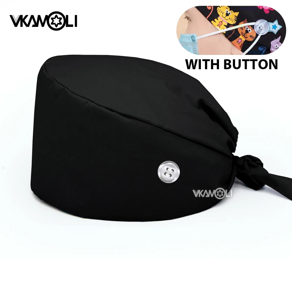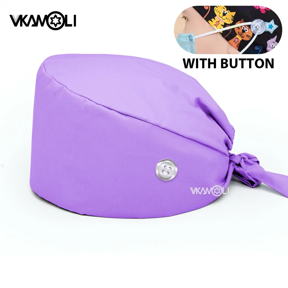 Solid color 100%cotton medical surgical cap nurse hair care Baotou scrub cap beauty salon nursing cap with button scrub hats