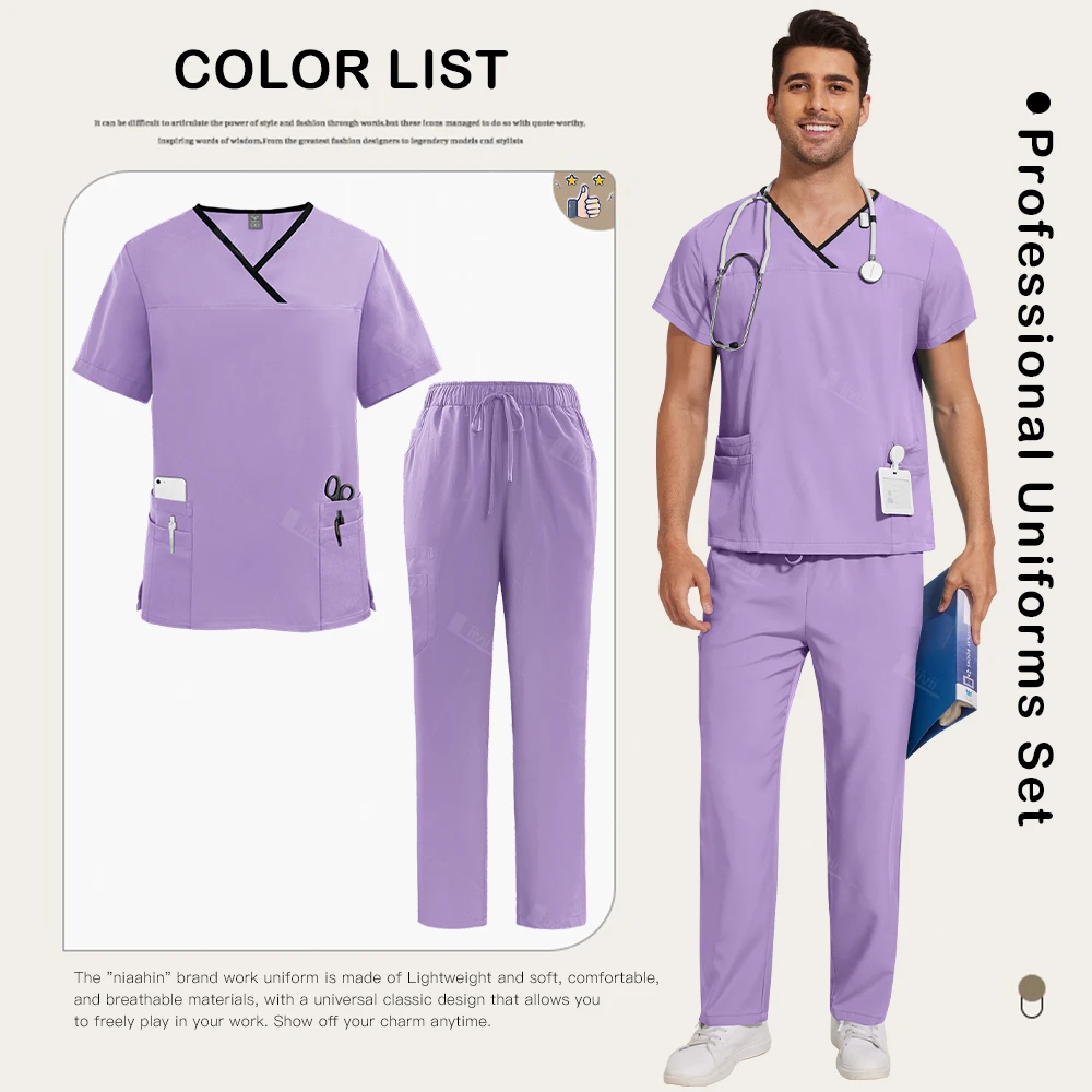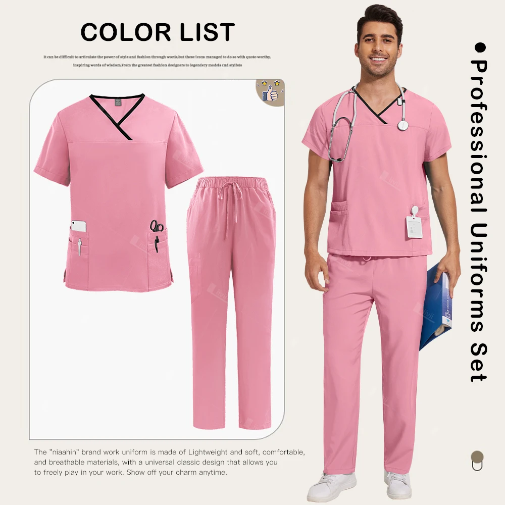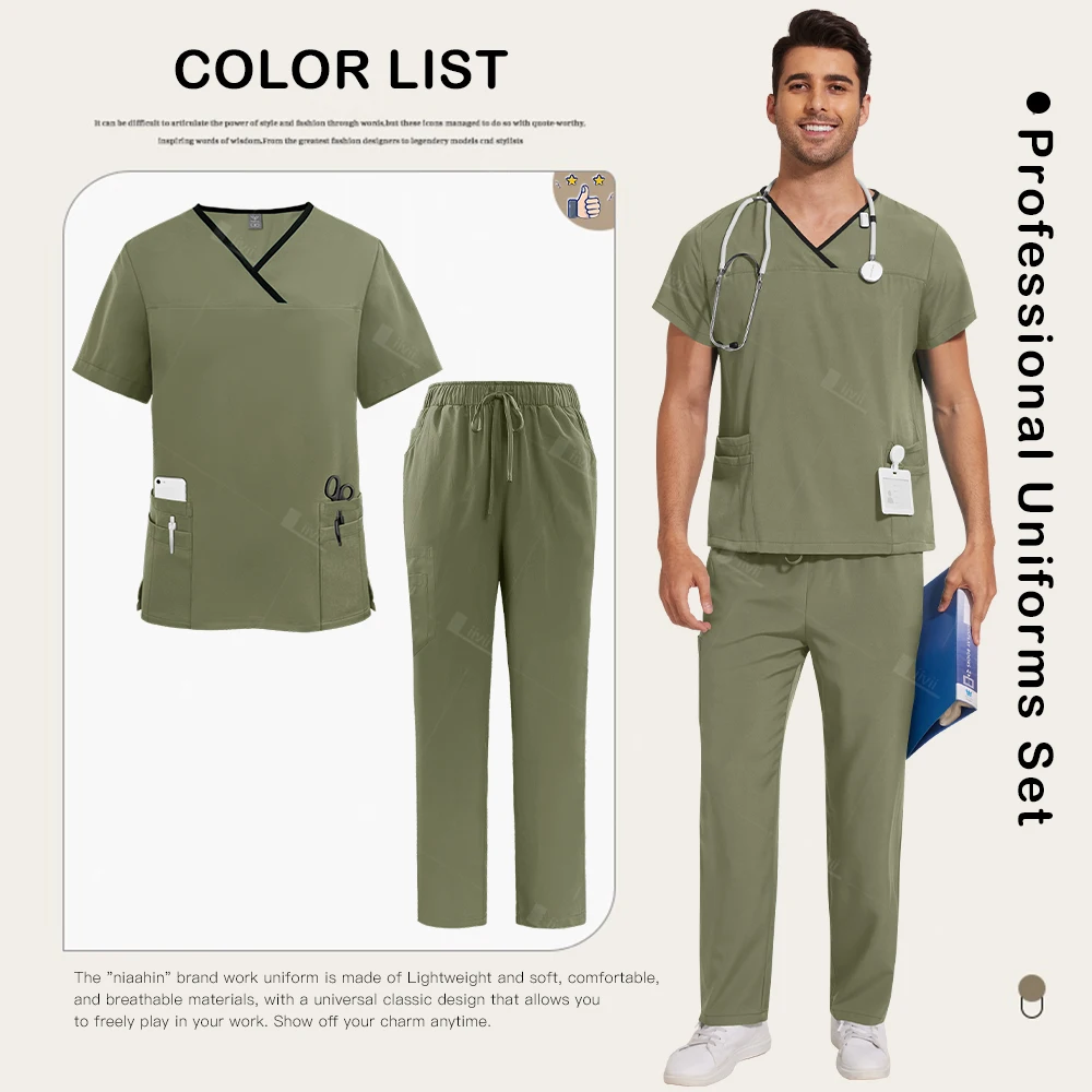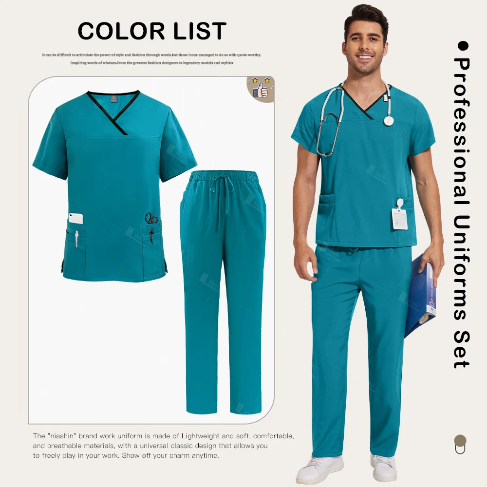 Surgical Uniforms Lab Workwear Clothes Nurse Scrubs Set Men Nurse Accessories Medical Uniform Surgical Dental Clinical Top Pants