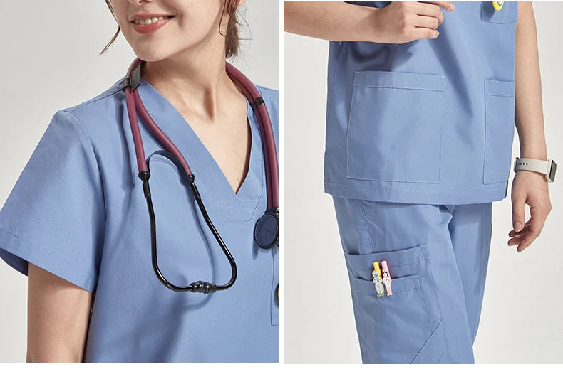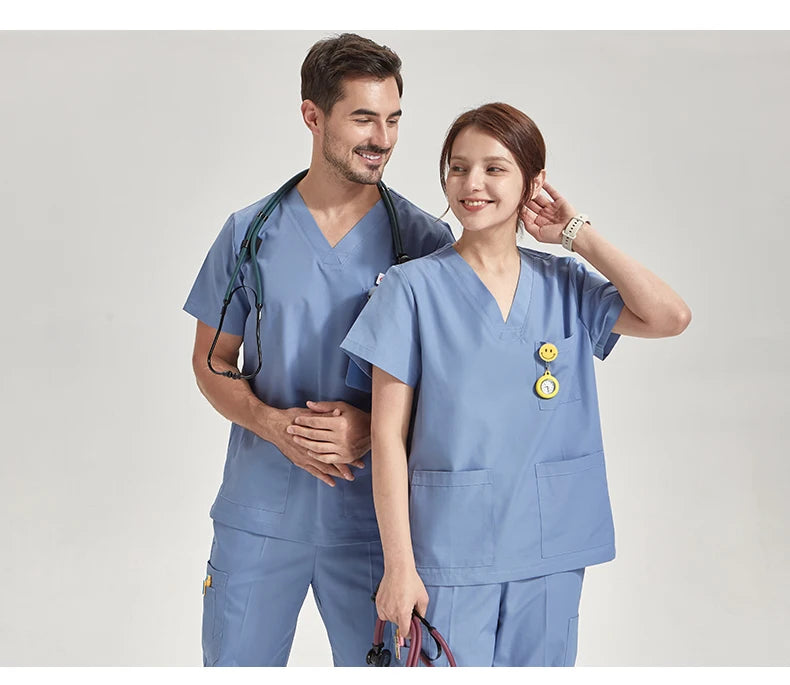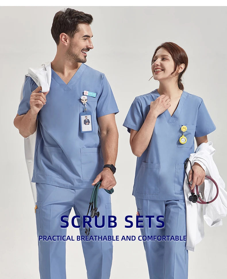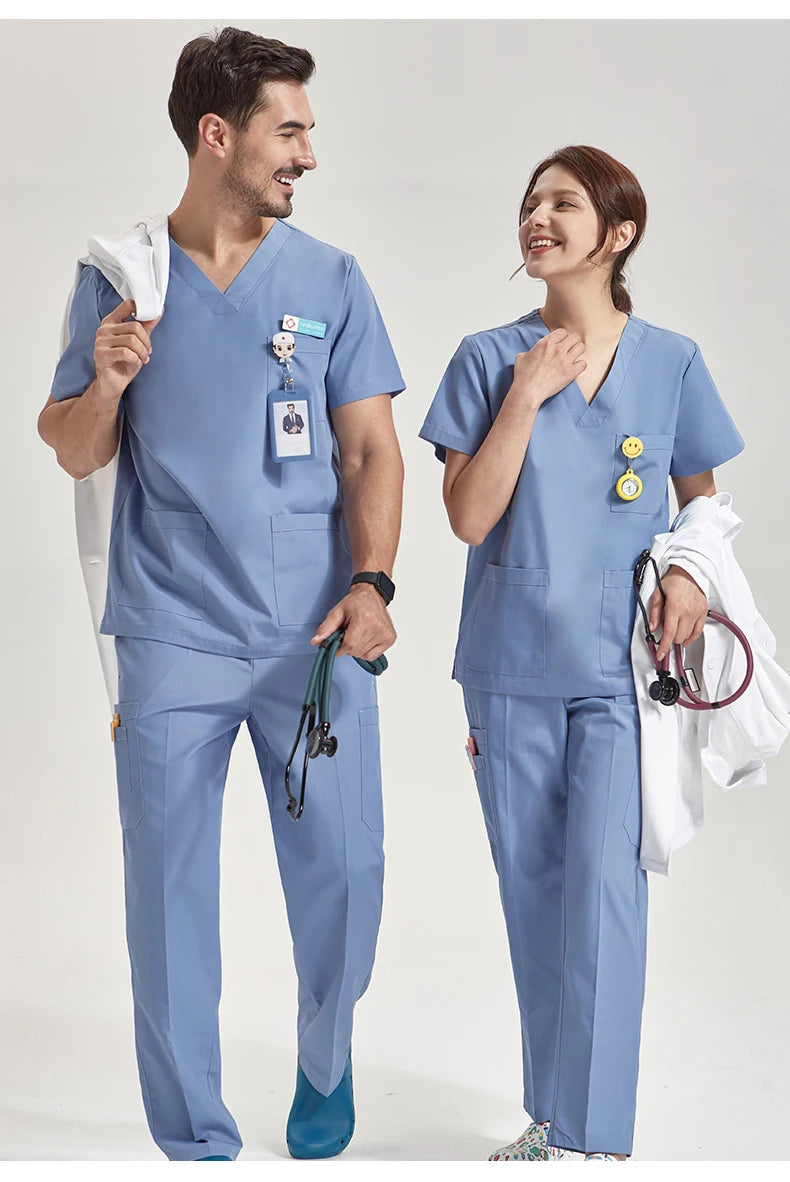 Ultra Light Scrub Set Medical Nurse Uniform for Women Men Hospital Doctor Workwear Poplin Fabric Veterinary Surgical Outfit 8020