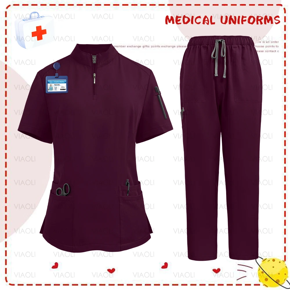 uniformes clinicos mujer Women Medical Uniforms Elastic Scrub Set Beauty Spa Hospital Surgical Top Pants Nursing Doctors Clothes