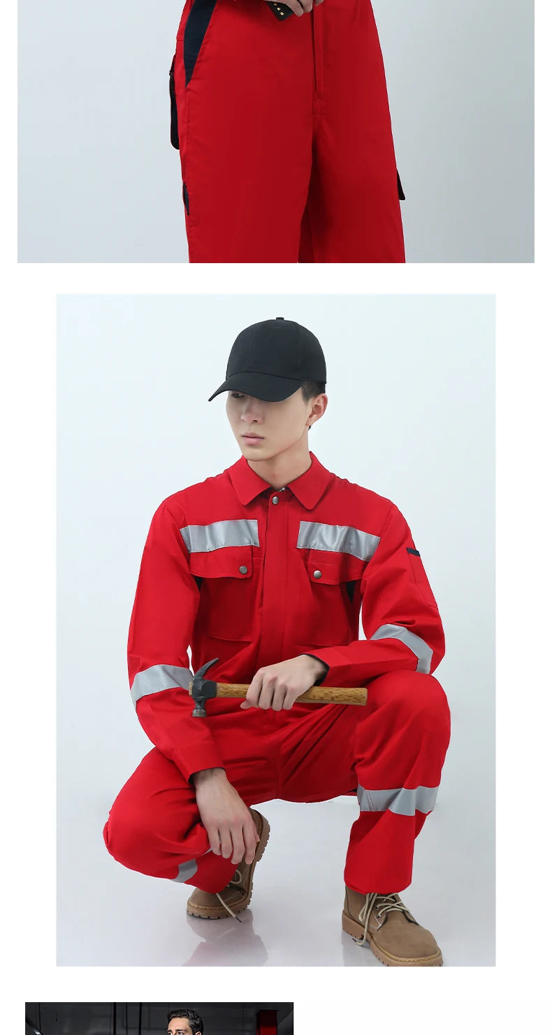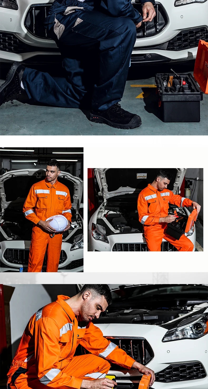 Work Coveralls Repairman with Reflective Strip Mechanic Auto Workshop Clothes Working Uniforms Plus Size 3XL