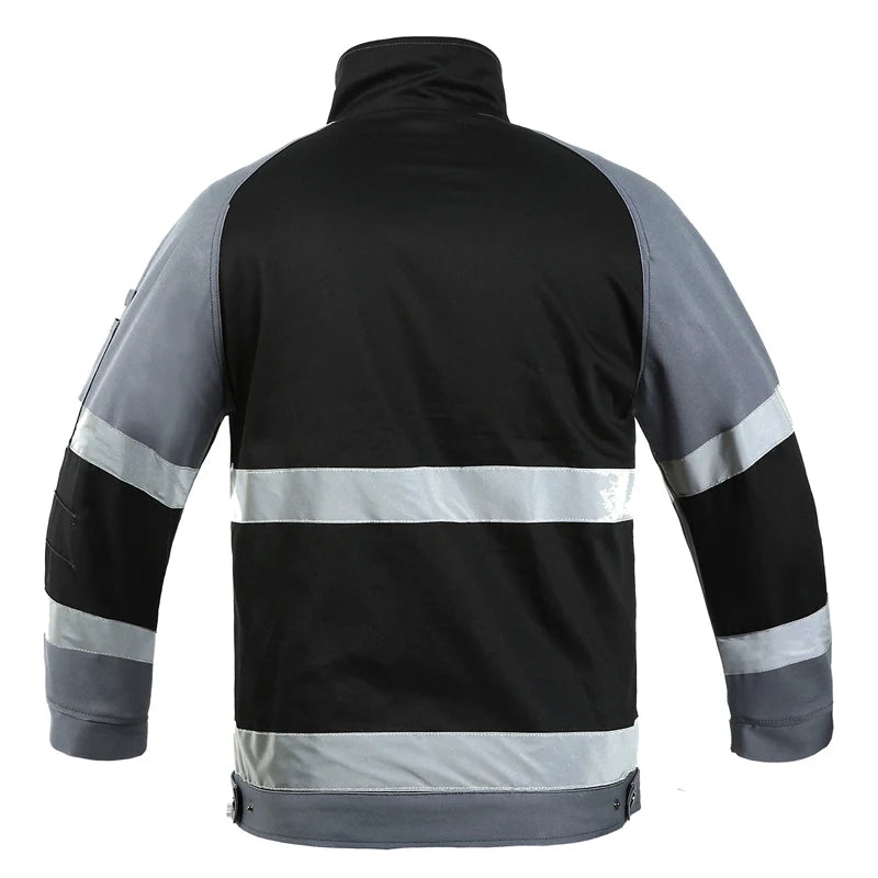 Work Jacket Men Reflective Stripes Black Gray Stitching Coveralls Outdoor CottonMulti-pockets Safety Wear-resistant Workwear